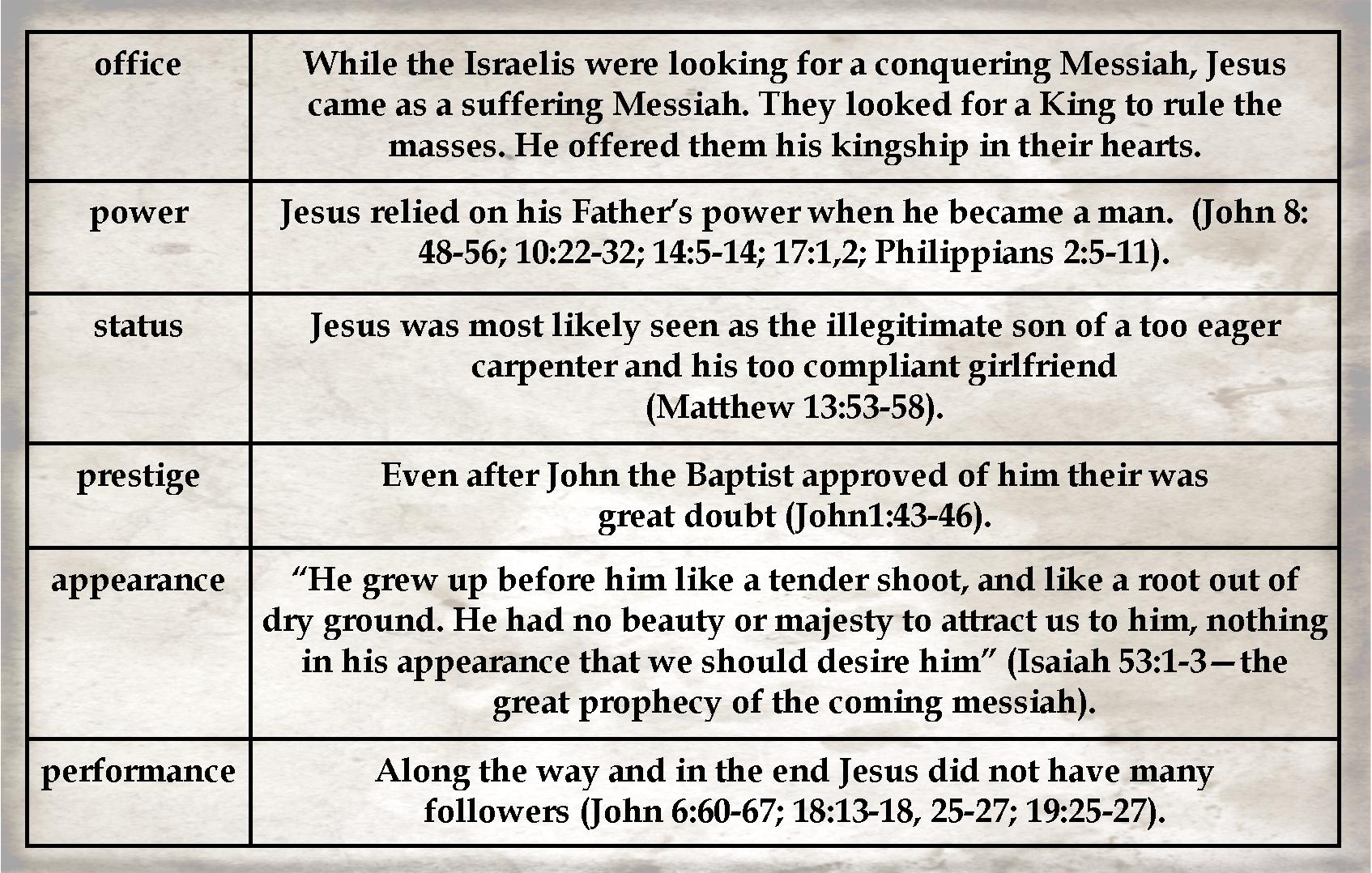 In Philippians 2:5-8, this great truth was recorded by the Apostle Paul:  “Your attitude should be the same as that of Christ Jesus: Who, being in very nature God, did not consider equality with God something to be grasped, but made himself nothing, taking the very nature of a servant, being made in human likeness. And being found in appearance as a man, he humbled himself and became obedient to death—even death on a cross.” Now notice Paul did not say Jesus gave up his deity. Instead, he wrote about what Jesus took upon himself: humanity, servant-hood, humility, and obedience to sacrifice. While he did not relinquish his deity, he did give up his turf. It was not important that he be able to hold tight to his heavenly glory. As a result, just as we saw in the Gospel of Mark, he came to lead us into salvation through service.